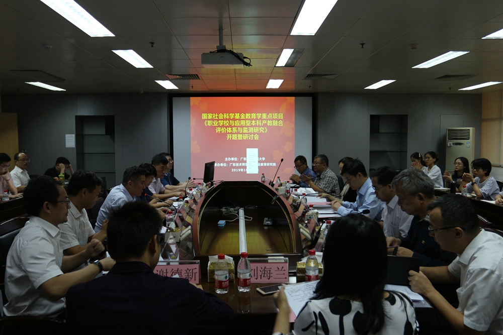 10月26日,我校黄崴教授主持的国家社会科学基金教育学“十三五”规划2019年度重点课题“职业学校与应用本科产教融合评价体系与监测研究”开题报告会在工业中心605举行。全国教育科学规划办公室吕晓嫣同志专程出席开题报告会;参加开题研讨会的评议专家有教育部职业教育中心研究所副所长曾天山教授、广东省教育研究院院长汤贞敏研究员、副校长许玲教授、广东建设职业技术学院院长赵鹏飞教授、上海市教育科学研究院职业教育与成人教育研究所所长郭扬研究员、华南师范大学高等教育研究所副所长李盛兵教授、陕西师范大学教育学院祁占勇教授等。本课题首席专家、副校级干部黄崴教授、广东省教育厅科研处副处长赖天来以及子课题负责人李海东教授、我校相关部门负责人以及课题组部分成员共40余人参加开题研讨会。