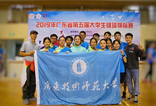 由广东省教育厅、广东省学生体育艺术联合会主办的2019年广东省第五届大学生毽球锦标赛于11月15-17日在广州市增城区体育馆举行。我校派出12名运动员参加比赛,经过两天激烈的角逐,我校毽球队队员们团结协作,奋力拼搏,最终获得甲组男子三人赛亚军、女子三人赛第五名、团体总分第四名的优异成绩,周爽老师获得“优秀教练员”称号。