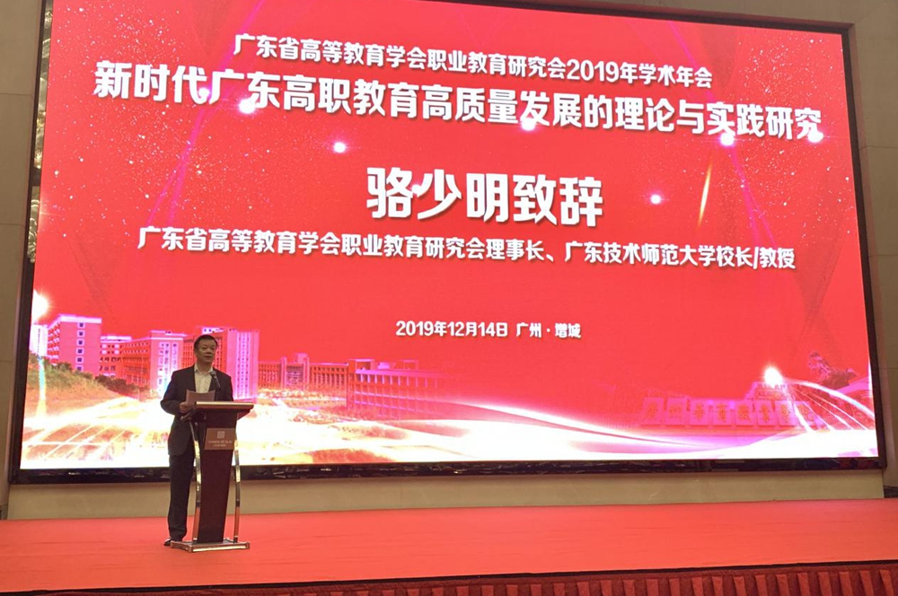 12月14日,由广东省高等教育学会职业教育研究会主办、广州华商职业学院承办的广东省高等教育学会职业教育研究会2019年学术年会在增城召开。广东省高等教育学会秘书长、广东省教育研究院高等教育研究室副主任孙丽昕,广东省高等教育学会职业教育研究会理事长、学校校长骆少明,我校副校级干部、职业教育研究院院长黄崴,广东省高等教育学会职业教育研究会秘书长、教育科学与技术学院院长陶红,广州华商职业学院院长王乐夫等各高职院校的校长、教科研人员、企业代表等,广州华商职业学院的教师、我校职业技术教育学专业的研究生200余人参加了年会。
