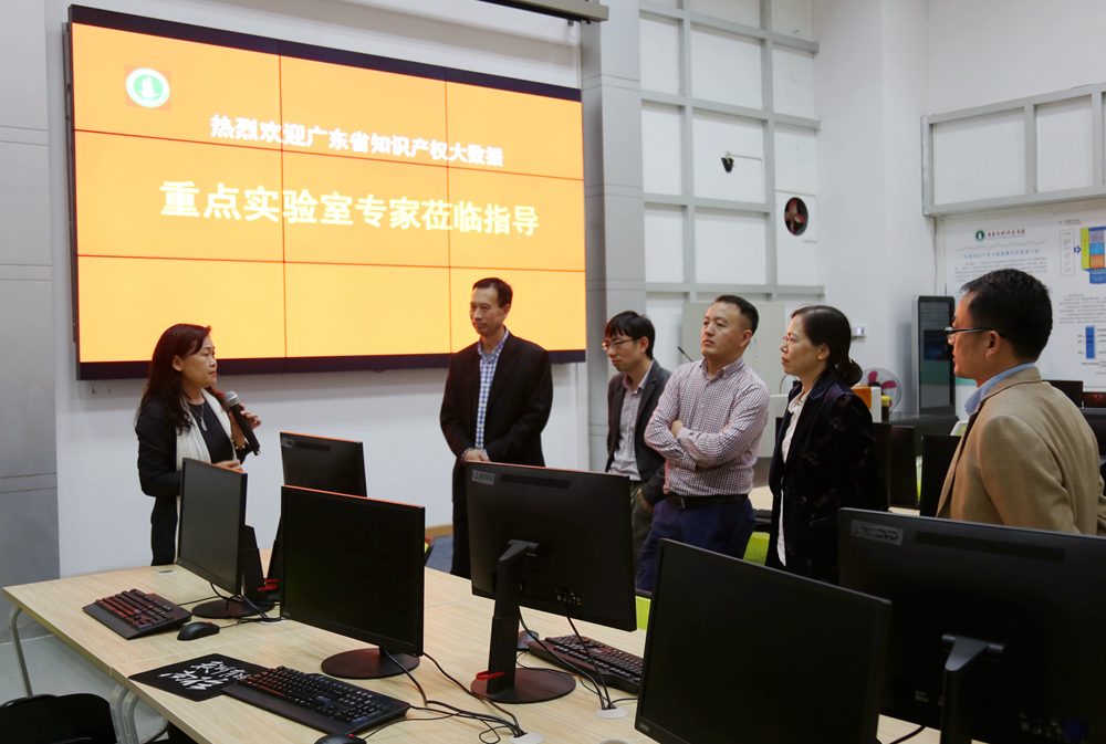 图为专家到我校戴青云教授主持的目前国内第一个专门从事知识产权大数据基础理论与应用研究的广东省知识产权大数据重点实验室考察