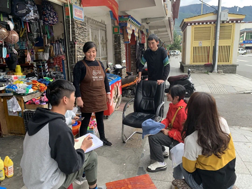 除了入户家访时询问各家各户的收入情况,支教队队员们还深入田间地头了解村情,到农贸市场、景区商户、餐馆民宿现场调查,合计发放并回收有效问卷240份。在此基础上,分析撰写完成《林芝市特色时令农副产品产业链调研报告》、《旅游促进民族特色手工艺品的开发和传承调研报告》。针对林芝时令农副产品生产加工中存在资金技术投入不够、销售途径较少、交通运输不便等问题,提出加大农业资金投入、建设公共服务平台、加快农业品牌建设等建议;而以旅游为支柱产业的林芝,其民族特色手工艺品的开发则存在产业化规模小、工艺简单、缺乏品牌意识等不足,调研报告也提出了加强开发,加快创新,向规模化、专业化发展的对策。