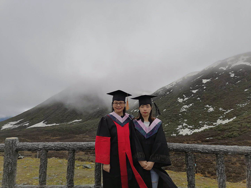 6月21日上午,在全体第四批支教队成员的共同见证下,在雪域高原猎猎冷风的吹拂下,在色季拉山垭口的石碑旁,朱敏老师亲手将李霞学士帽上的帽穗由右边拨向了左边:“李霞,毕业快乐,祝你前程似锦。” 李霞眼眶有些红:“谢谢老师,给了我一个这么特殊的毕业礼”。师生二人并立在色季拉山口合影留念,远处云遮雾罩下的南迦巴瓦峰就是这场告别的最好见证。《雪域高原林芝色季拉山:一个人的毕业典礼》被学习强国、中华全国学联、中国青年报、南方+等十几家主流媒体进行了报道。