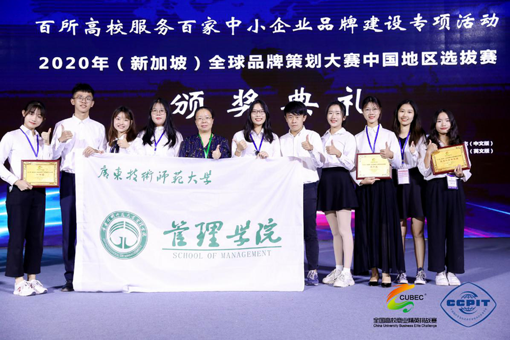 本次大赛由全球华人营销联盟(GCMF)、中国国际商会商业行业商会、中国国际贸易促进委员会商业行业委员会、中国商业文化研究会、中国许可贸易工作者协会、昆明市商务局和中国贸易报社主办,作为中国贸促会2020年中小企业促进工作重点项目,该竞赛活动已举办了七届,成为中国品牌与国外(境外)品牌交流切磋品牌建设经验的重要平台。本次大赛中国地区选拔赛由来自24个省、直辖市和自治区的近百名企业代表以及110所高等院校209支参赛队伍参加。管理学院高度重视此次竞赛,从指导老师配备、选拔参赛学生、训练指导等方面都做了充足的准备。比赛中,两支队伍在活动策划方案陈述、现场答辩两个环节表现亮眼,展现出我校学子在运用品牌管理相关知识、开展品牌策划等方面的突出能力。