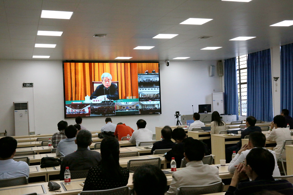 11月13日上午,教育部举办教育系统党的十九届五中全会精神宣讲报告会。中央宣讲团成员、教育部党组书记、部长陈宝生作宣讲报告,宣讲报告会同时以电视电话会议形式召开。学校领导、各二级党组织书记、机关职能部门负责人、马克思主义学院全体教师和学生代表100余人在广师大分会场集中收看报告会。