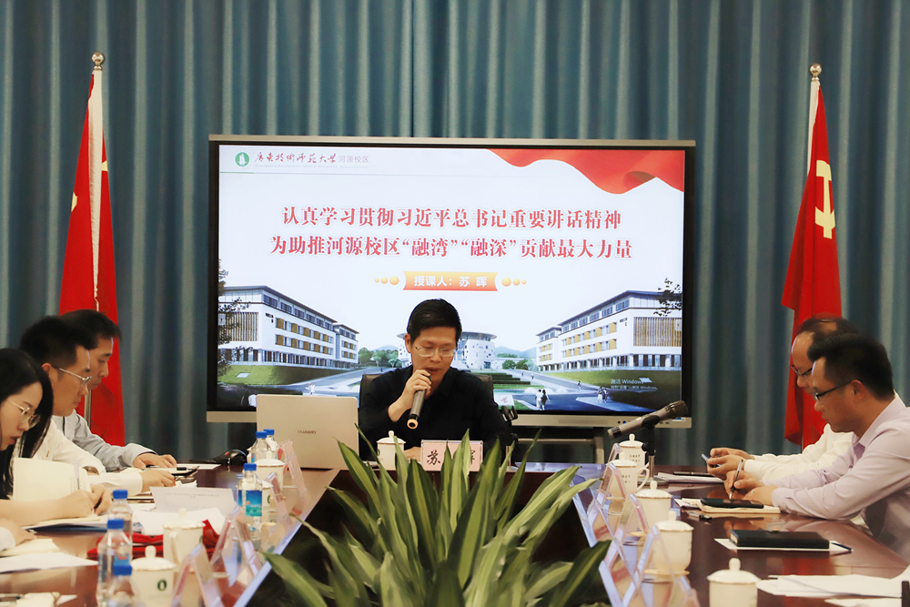 11月13日,在河源校区厚德楼418会议室,学校副校长苏晖为河源校区教工党员作了题为《学习贯彻党的十九届五中全会精神 为融湾融深做大做强河源校区作最大贡献》的专题党课。河源校区全体教工党员聆听了报告。