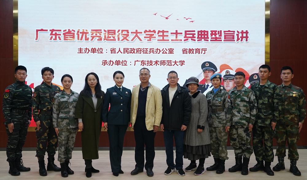 为落实国务院、中央军委“一年两征”征兵工作部署,进一步激发大学生参军报国、履行国防义务的热情,12月23日,由广东省人民政府征兵办公室、广东省教育厅主办,我校承办的广东省优秀退役大学生士兵典型宣讲活动在我校东校区一教208讲学厅举行。省教育厅体卫艺处副处长张建锋、杜武广科长、省征兵办参谋盛夏出席,学校武装部相关负责人以及200余名在校生参加了宣讲活动。宣讲由武装部负责人主持。