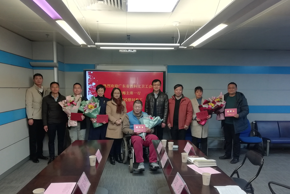 1月12日,广东省教科文卫工会主席谢岩梅、副主席胡建钢一行莅临我校开展调研慰问。学校党委副书记、纪委书记、监察专员、工会主席贺勇,校工会同志、劳模先进教师、扶贫工作一线干部和困难教师代表参加了座谈会。