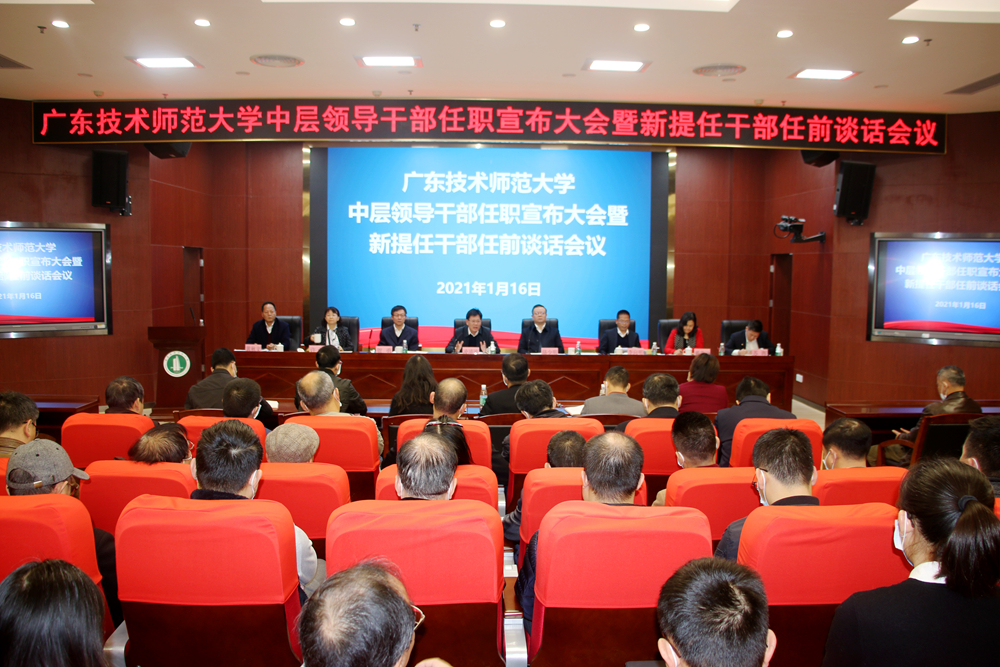 根据学校中层领导干部换届工作的部署,1月16日,学校召开中层领导干部任职宣布大会暨新提任干部任前谈话会议。学校全体校领导、现任中层干部和新提任中层干部参加会议。会议由学校党委副书记、校长骆少明主持。