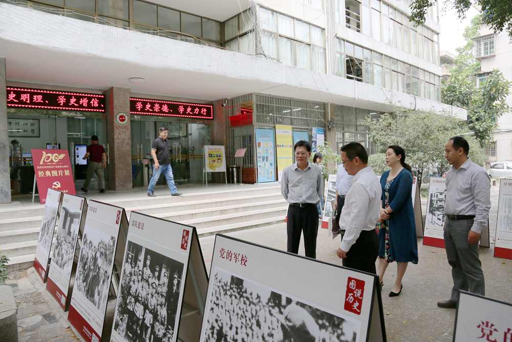 为庆祝中国共产党建党100周年,深入开展党史学习教育,图书馆于4月6日起在东校区图书馆门前广场举办“回顾党史瞬间,致敬百年岁月”主题图片展览活动。开展当天,学校党委书记凌靖波,党委副书记李向明,副校长黄秋文、苏晖,部分职能部门负责人和师生代表到场观展。