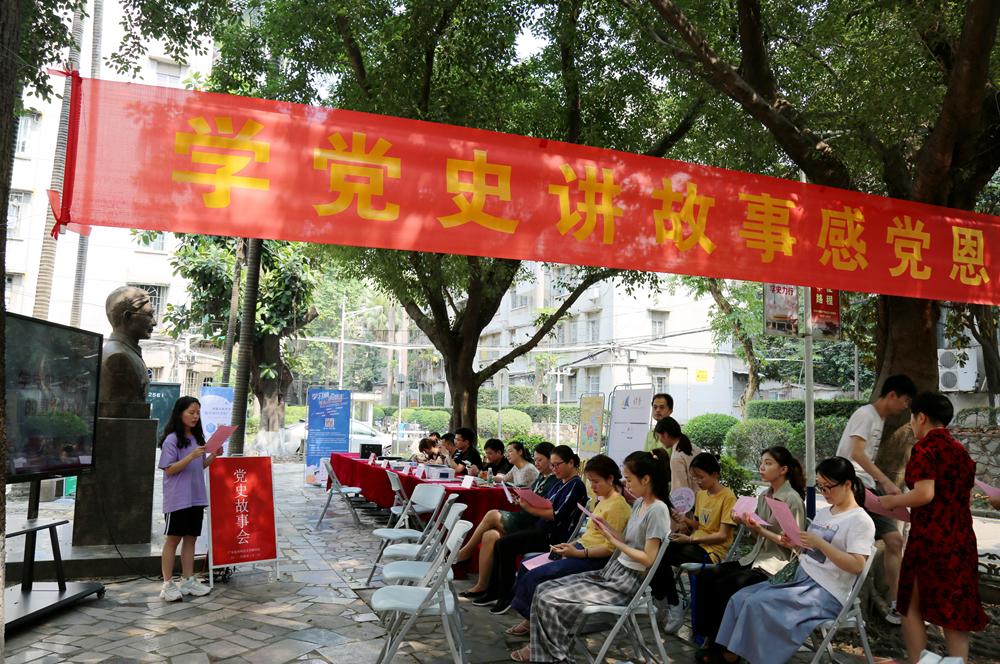 活动分校区进行。在东校区图书馆门前广场,“百年党史:中国共产党历次全国代表大会简介”专题展览23块展板依次摆开,展示了中共一大到中共十九大的召开情况、重要内容及历史意义等;党史学习教育专题图书展览中,五百余种党史学习教育相关图书吸引了大批师生驻足翻阅;“学党史、讲故事、感党恩”活动,数十名师生党员轮流上台讲党史小故事,一堂堂生动的微党课赢得了听众的掌声和赞许;图书盲盒活动,现场借出图书近两百本;“名画模仿秀”吸引了大批同学围观,纷纷投票支持;“图书馆心愿墙”贴满了同学们对白云校区新馆的期许;图书漂流活动秉承绿色理念,将个人闲置书籍流动起来;“阅读达人”评选活动展示了年度借阅量最多的各类别前十读者,倡导“多读书、读好书”。