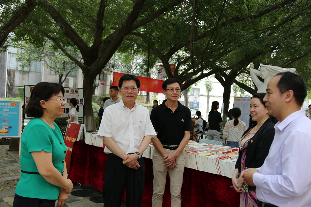 芳菲四月,书香满园。在第26个“世界读书日”来临之际,图书馆陆续推出系列活动营造阅读氛围,推进党史学习教育和校园文化建设,4月23日,图书馆推出“以书筑梦奋征程,向史而新续华章”世界读书日系列活动。学校党委书记凌靖波,党委副书记、纪委书记、监察专员贺勇,副校长许玲等学校领导亲临活动现场参观指导。