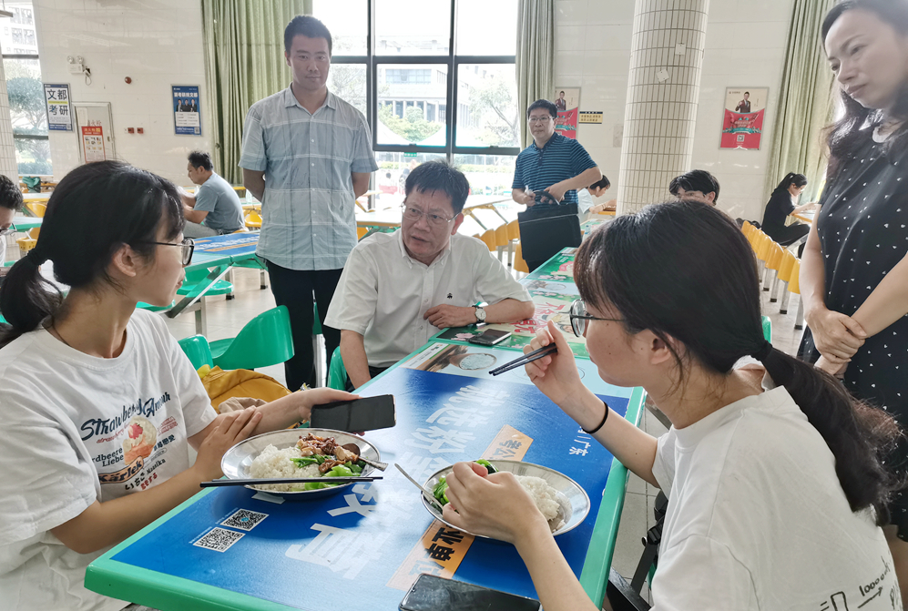 随后,凌靖波深入白云校区第一食堂听取现场就餐同学对饭菜质量的意见和建议,与食堂负责人、学生等学校饮食管理与服务工作进行深度交流,并和同学们一起共进午餐。