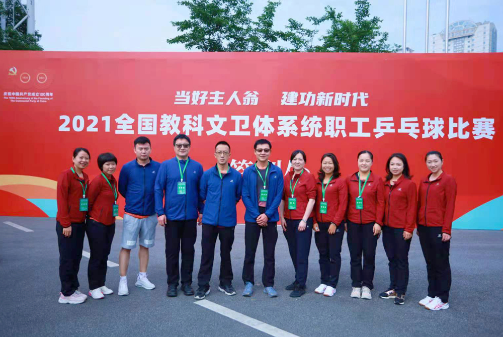 近日,全国教科文卫体系统职工乒乓球比赛在湖南省体育馆举行。经广东省教科文卫工会选派,由我校工会负责牵头组建广东省教科文卫代表队参加该项比赛。学校党委副书记、纪委书记、监察专员贺勇受上级工会委托率队参赛,体育学院麦乐乐老师任教练员,工会两位干部随队赴赛。