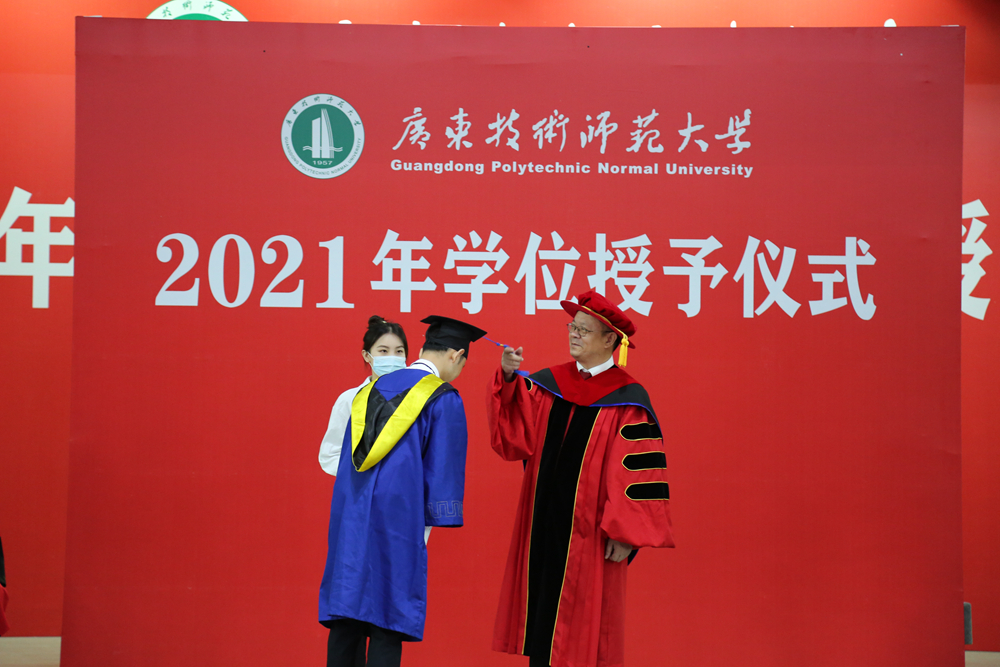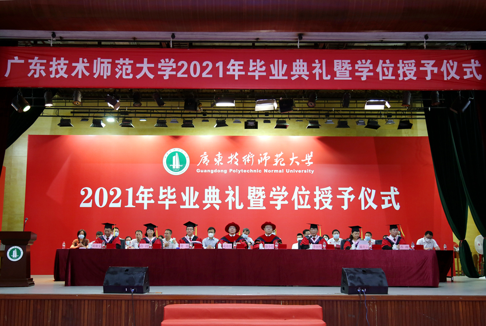 7月2日上午,广东技术师范大学2021年毕业典礼在学校东校区综合馆三楼举行。根据疫情防控要求,典礼采取线上线下相结合的方式进行。全体校领导、有关职能部门和各二级学院负责人、导师代表以及全体2021届毕业生1729人参加了毕业典礼。学校党委副书记李向明主持典礼仪式。