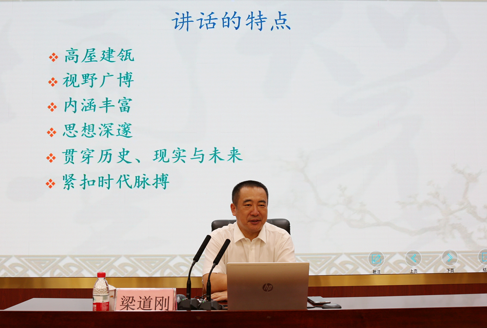 会上,梁道刚作了题为《奋斗百年路,开启新征程——认真学习贯彻习近平总书记“七一”重要讲话精神》的专题报告。他指出,习近平总书记“七一”重要讲话高屋建瓴、视野广博、内涵丰富、思想深邃、贯穿历史、现实与未来、紧扣时代脉搏,全面回顾党领导革命、建设、改革的历史进程和伟大成就,深刻总结党领导人民开辟中国特色社会主义的宝贵经验和历史启示,深刻指明全面建设社会主义现代化国家的光明前景和发展方向,是我们党在新的历史起点上开启全面建设社会主义现代化国家新征程的行动纲领。他强调,要深刻领会习近平总书记“七一”重要讲话的重大意义、全面把握习近平总书记“七一”重要讲话的主要内容、深入贯彻习近平总书记“七一”重要讲话精神。