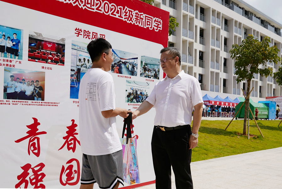 9月11日,我校迎来了2021级本科新生,来自全国各地的8239名新生怀揣着梦想和憧憬走进河源校区,他们将在这充满客家风情的山水校园中开启逐梦新征程的篇章。学校党委书记凌靖波、校长骆少明、党委副书记李向明、副校长苏晖深入新生报到现场,检查指导迎新报到工作,看望慰问新生和参加迎新工作的师生员工。