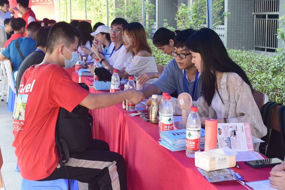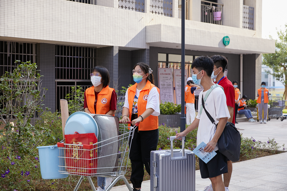 身着各色志愿服装的志愿者们带着微笑和热情穿梭于校园各个角落。753名迎新志愿者参加了迎新活动,其中老生志愿者302名,新生志愿者451人。451名新生志愿者通过线上报名参加本次迎新志愿活动,提前2天到达校区报到并接受培训,他们在校门、报到点、宿舍等岗位上为其他新生讲解指引、答疑问询,在这堂特殊的“开学第一课”中学习“奉献、友爱、互助、进步”的志愿精神。