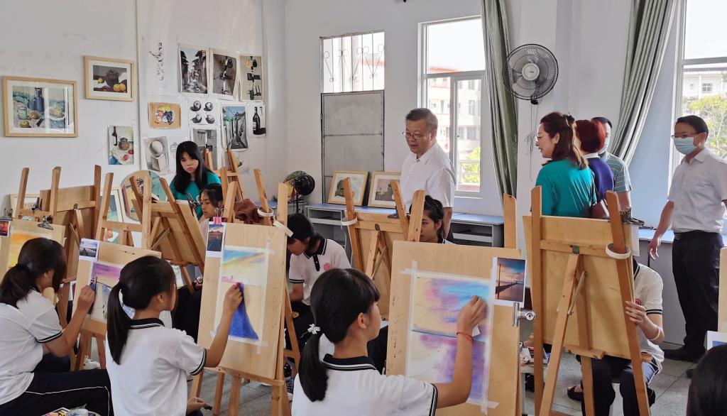 9月16日,学校校长骆少明、副校长苏晖率领校长办公室负责人,音乐学院、美术学院党政领导深入河源市连平县检查指导省教育厅“美育浸润计划”的实施情况,受到连平县委书记陈贤亮、县长邓小强、常务副县长黄运腾,市教育局副局长黄伟,县教育局局长潘继红、副局长林慧萍的热烈欢迎。