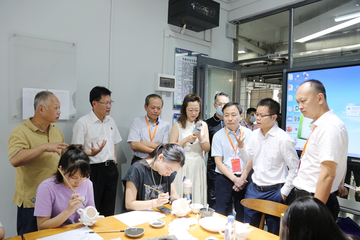 见面会结束后,美术学组、学前教育组成员分别集体考察了美术馆、大师工坊、智慧教室,学前教育专业实验室、师范技能训练中心、粉笔字训练长廊等。