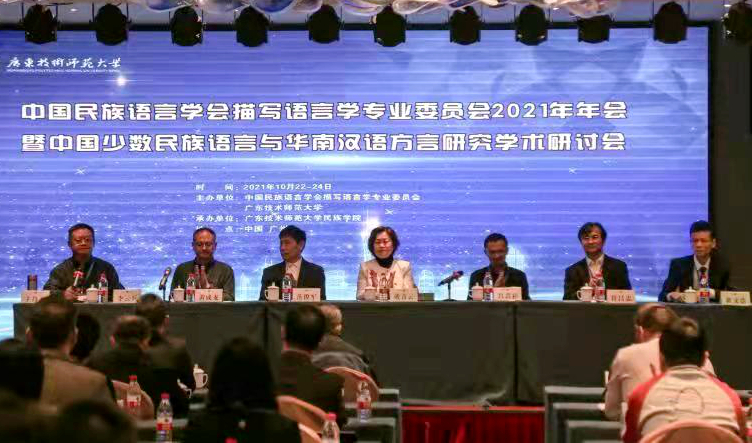 10月23日,中国民族语言学会描写语言学专业委员会2021年年会暨中国少数民族语言与华南汉语方言研究学术研讨会在广州召开。本次研讨会由中国民族语言学会描写语言学专业委员会、广东技术师范大学主办,广东技术师范大学中华民族共同体华南及粤港澳大湾区研究基地、广东技术师范大学中华民族共同体研究院、广东技术师范大学民族学院共同承办。来自中国社会科学院、中国人民大学、复旦大学、中山大学、山东大学、南开大学、湖南大学、中央民族大学、北京师范大学等高校和科研院所的近80名专家、学者通过线上线下结合的形式参加了本次学术研讨会。