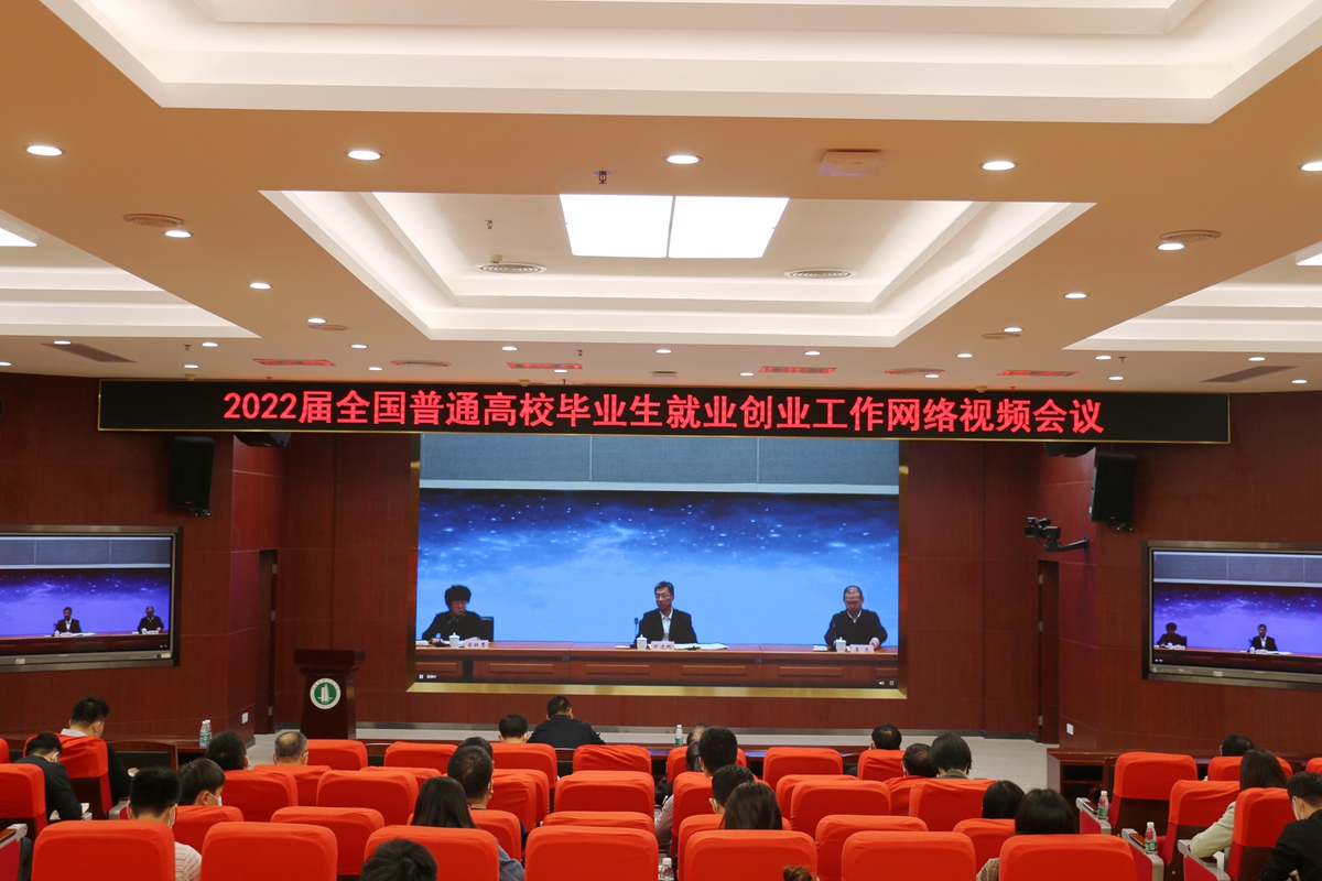 为深入学习贯彻习近平总书记在十九届六中全会上的重要讲话精神和会议精神,落实党中央、国务院决策部署,11月19日,教育部、人力资源社会保障部召开2022届全国普通高校毕业生就业创业工作网络视频会议。教育部党组书记、部长怀进鹏,人力资源社会保障部党组成员、副部长李忠出席会议并讲话,教育部党组成员、副部长翁铁慧主持会议。我校在东校区第一教学楼208讲学厅设立视频会分会场,学校校长戴青云,党委副书记李向明出席会议,招生就业办公室、研究生院、创新创业学院等单位负责人及相关人员,各二级学院主要负责人、党委副书记及全体2022届毕业班辅导员参会。