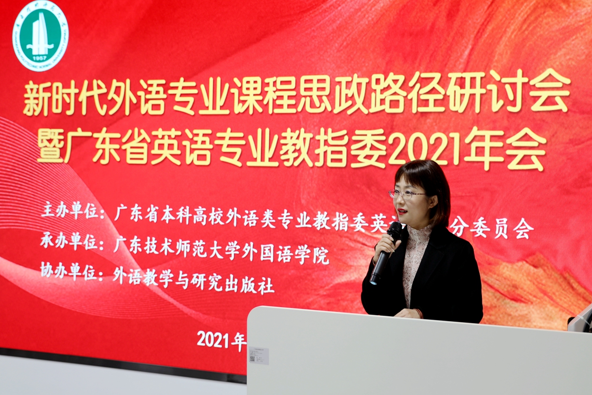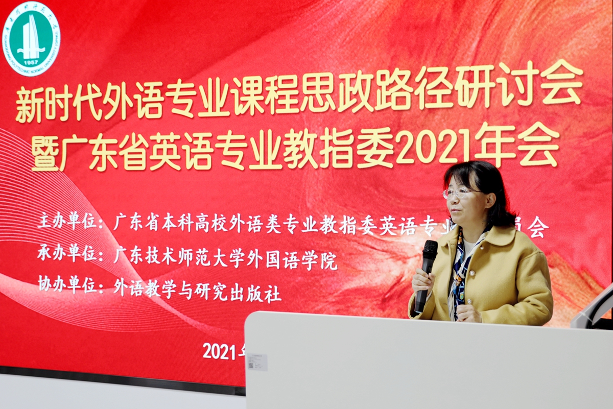 12月19日,广东省英语专业教指委2021年年会在我校召开。本次大会由广东省本科高校外语类教指委英语专业分委员会主办,广东技术师范大学外国语学院承办,外语教学与研究出版社协办。本次年会围绕新时代外语专业课程思政主题进行交流和研讨。学校副校长许玲,省教育厅高教处处长姜琳,省英专教指委主任委员、广东外语外贸大学英语语言文化学院院长张欣教授出席开幕式并致辞。来自全省各院校的英语专业教指委委员、外语教育领域专家、学者以及外国语学院师生共百余人参加年会。开幕式由我校外国语学院院长徐玲教授主持。