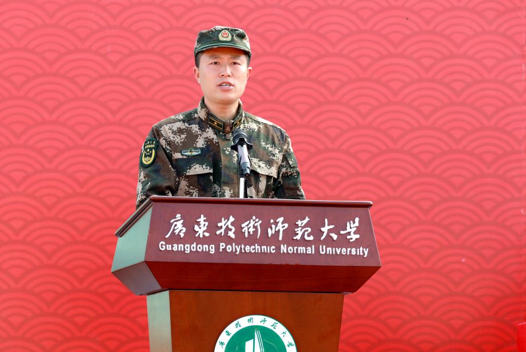 军训团团长谢章勇和军训团参谋长杨显在讲话中勉励参训学生,发扬革命军人特别能吃苦、特别能守纪、特别能奉献、特别能忍耐的精神,用出色的训练成绩向学校汇报。