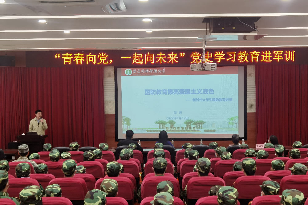 为深入贯彻落实党的十九届六中全会精神,扎实开展“青春向党,一起向未来”党史学习教育进军训活动,1月12日,学校党委副书记、纪委书记、监察专员贺勇以《国防教育擦亮爱国主义底色》为题,在白云校区三教104报告厅为管理学院师生讲授了一堂国防教育主题思政课。学生处相关负责人、管理学院领导班子成员、全体辅导员,部分军训教官及管理学院2020级学生共计280余人到场聆听学习。