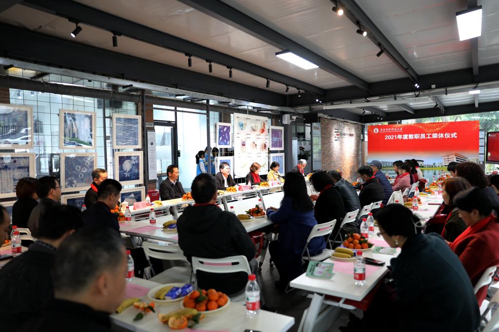 为加大教师表彰力度,建立健全教师荣誉体系,表达学校对退休教职工的崇高敬意和衷心感谢,1月13日下午,学校在东校区非遗传承大师工坊举行2021年度教职工荣休仪式。学校党委书记凌靖波、校长戴青云、党委副书记李向明、副校长许玲出席仪式,2021年度全体荣休教职工、荣休教职工原单位党政正职领导,相关职能部门负责人,青年教师代表、学生代表等共同见证了这一隆重时刻。仪式由李向明主持。