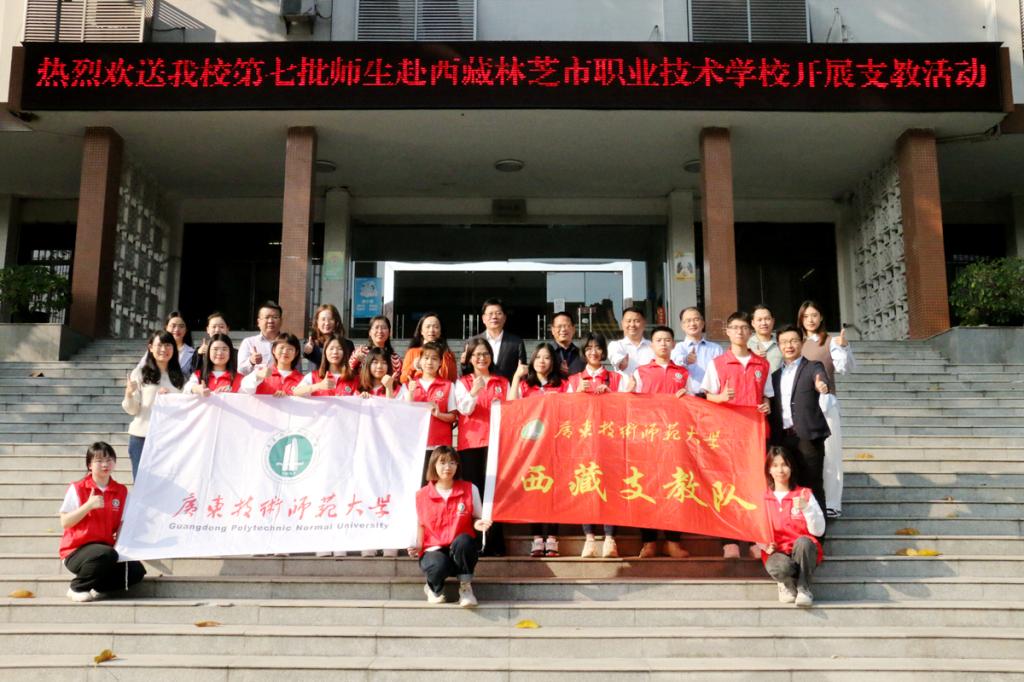 3月3日,我校在东校区举行第七批赴西藏林芝市职业技术学校支教师生出征欢送活动。学校党委书记凌靖波,副书记李向明出席出征仪式,学生工作部及相关学院人员、全体支教师生参加了活动。