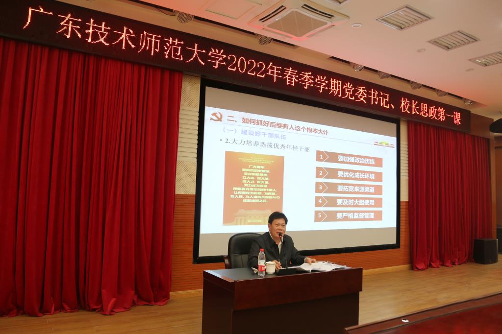 为深入学习领会党的十九届六中全会精神,推动党史学习教育深入开展,根据省教育厅2022年春季学期第一堂思政课相关要求部署,3月9日,学校党委书记凌靖波在白云校区三教104室为师生们讲授“思政第一课”。学校校长办公室、党委组织部、党委宣传部、学生工作部、团委、部分学院负责人和辅导员、各学院学生代表等聆听授课。