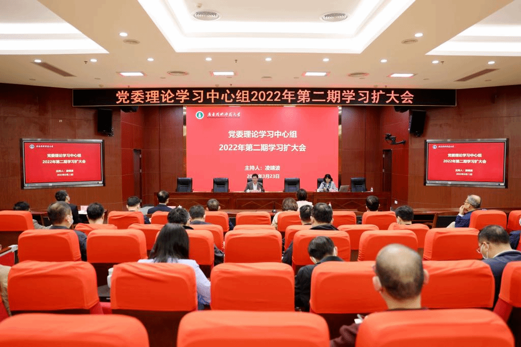 3月23日,学校召开党委理论学习中心组2022年第二期扩大会议,全体校领导、中层正职干部参加此次会议。会议由学校党委书记凌靖波主持,全国政协委员、民建广东省委会副主委、副校长许玲作专题报告。