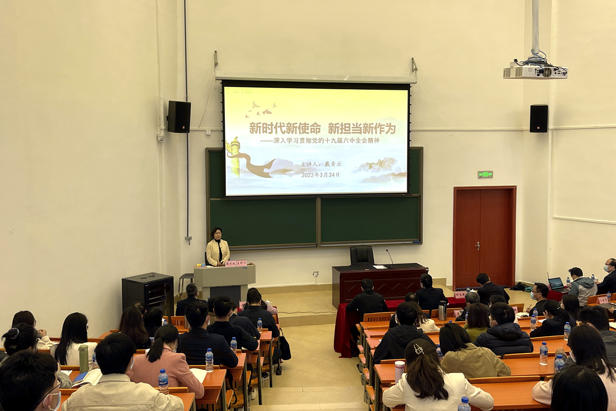 本次思政课以《新时代新使命 新担当新作为——深入学习贯彻党的十九届六中全会精神》为题,戴青云从党的十九届六中全会精神内涵出发,带领在场师生共同学习了党的十九届六中全会精神,围绕着为国家发展做贡献、为社会发展服务、为学校发展出力、为家庭发展赋能、为个人发展努力这五个方面阐述了当代大学生的使命与担当。