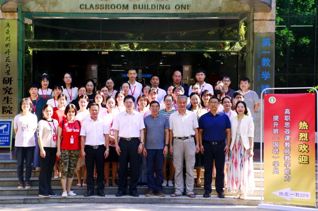 为贯彻落实《广东省教育厅关于做好2022年职业院校教师素质提高计划培训工作的通知》精神,促进高职思政课教师教学能力提升,推进“双师型”职教师资队伍建设,7月22日,2022年广东省高职思政课教师教学能力提升班(国培)在我校开班。学校党委书记凌靖波出席了开班仪式并致辞,中山大学博士生导师、教授郭文亮,学校师资培训中心、马克思主义学院等单位负责人以及来自广东省各地区的近40名学员参加了开班仪式。