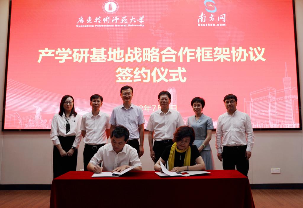 侯小军代表南方新闻网对学校的热情欢迎表示感谢。他介绍,南方新闻网是省属副厅级事业单位,负责建设运营南方网、南方英文网、粤学习客户端等媒体平台,在南方报业传媒集团旗下与南方日报、南方杂志、南方+客户端共同构成了广东“一报一刊一网一端”的党媒立体传播格局。南方新闻网深入学习贯彻习近平总书记在全国网信工作会议上的重要讲话精神,以“新闻立网、技术强网、创新兴网”为发展理念,坚持“内容+技术+服务”驱动发展战略,积极探索建立“新闻+政务服务商务+技术”的运营模式。目前,南方新闻网正按照广东省委“网络强省”的部署要求,以“智慧型、科技型”互联网媒体为发展目标,制定“以客户为中心,以产品为导向”、“以市场投入为主、市场超前投入为辅”的技术创新路径。广师大是在新工科、新师范、新文科上与服务社会充分融合的应用型高校,接下来,希望双方依托研究院和各类共研共创项目,在自然语言处理、知识图谱、国密信创、数字媒体生产等技术领域开展产学研合作攻关,深度赋能媒体融合和“数字政府”,共同服务“数字广东”建设,助力实现我省“网络强省”战略,并在实践中共同培养网络信息安全和媒体融合发展人才,实现产教融合共赢。
