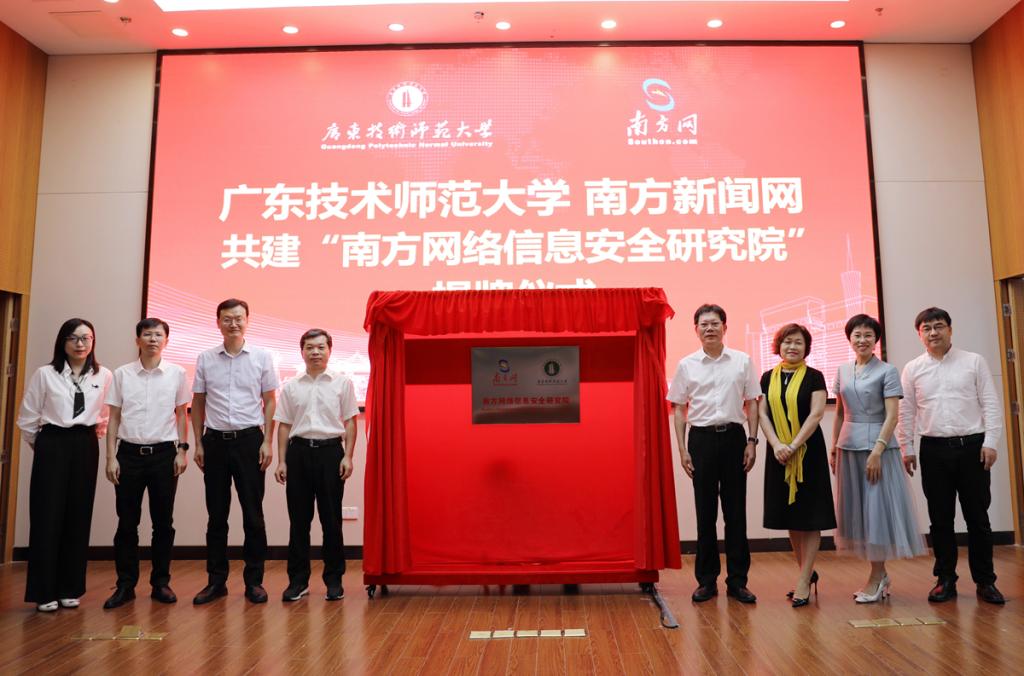 7月5日上午,我校与南方新闻网共建“南方网络信息安全研究院”的揭牌仪式在西校区实验楼一楼报告厅顺利举行。南方新闻网总编辑侯小军,南方新闻网党委委员、副总裁胡智勇以及南方新闻网、南方网信科技公司相关负责人,学校党委书记凌靖波、校长戴青云以及学校相关单位负责人、网络空间安全学院师生代表参加了活动。活动由戴青云主持,凌靖波、侯小军分别代表合作双方作了致辞,戴青云和侯小军代表双方签订了产学研基地战略合作框架协议。