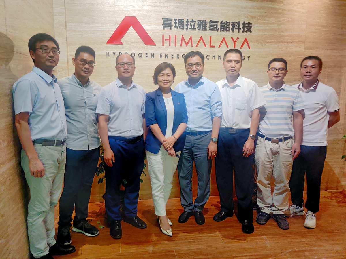 戴青云走访了广东喜马拉雅氢能科技有限公司,在我校校友、公司总裁黄杰锋带领下,学校一行参观了该公司自主研发的氢能燃料电池纳米负载型催化剂、发动机、膜电极等高科技产品展厅,深入了解该公司发展历程、技术研发、产业布局、人才需求等情况。